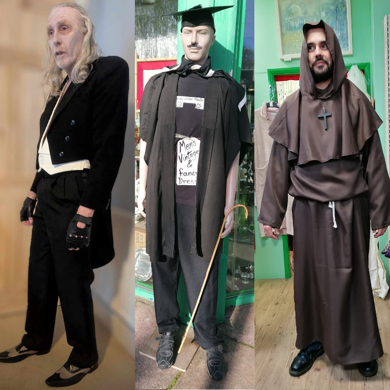 Many spooky outfits for Halloween. Enjoy the dark side, as Riff Raff, a monk, or maybe a demonic schoolmaster!
