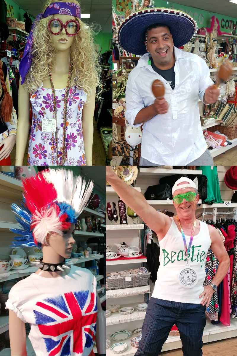 There are always plenty of fancy dress outfits & accesories to suit themed summer parties, events & festivals. Always ask for help to put outfits together, if you are not sure, we have lots of experience!