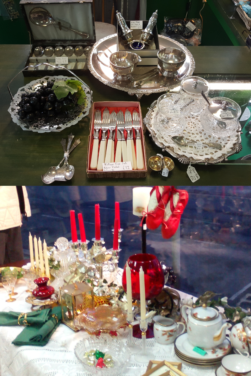Vintage wine, sherry/port or champagne glasses. Candelabras & tea-light holders. Cut glass or crystal bowls for triffles etc. Silver plated servers & table decorations