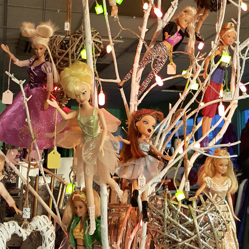 Barbie, Sindy, Bratz, Action Man! They get a spa day, their hair done, a new outfit & shoes, before displaying on my 'Barbie' tree.